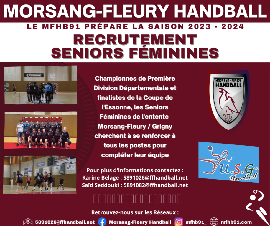 Les Seniors Féminines de l'entente Morsang-Fleury / Grigny recrutent !