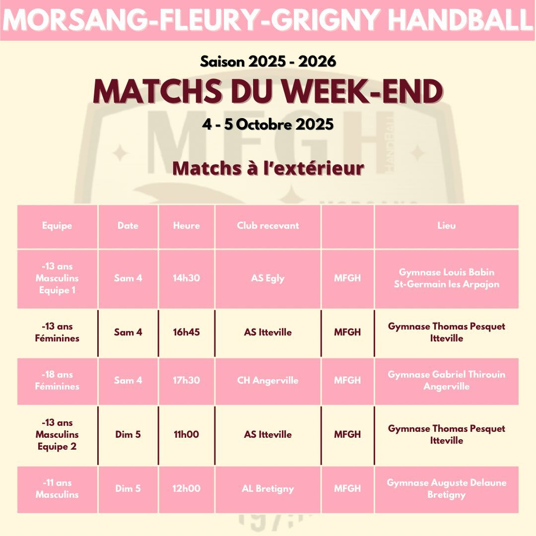 Pas moins de 5 collectifs jeunes du club seront en déplacement ce week-end, nous vous invitons à aller les encourager autant que possible pour faire briller les couleurs du club !