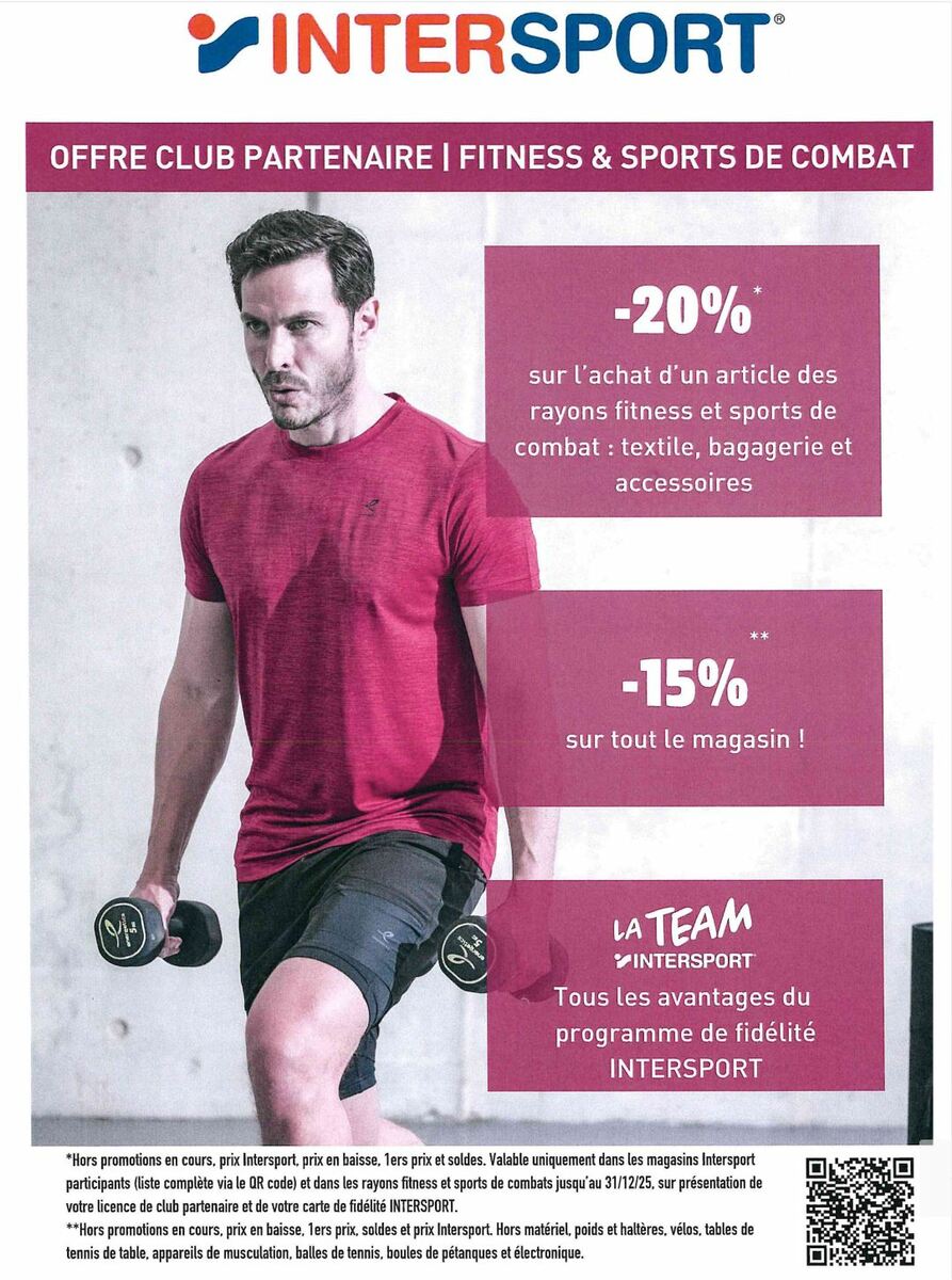 Grâce à un partenariat entre notre structure et Intersport, vous pouvez bénéficier de réductions en magasins !