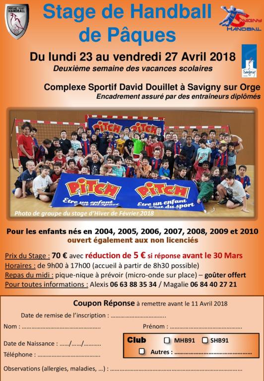 Comme à chaque vacances, un stage de handball est proposé aux jeunes la 2ème semaine des vacances au gymnase Douillet en collaboration avec le club de Savigny.