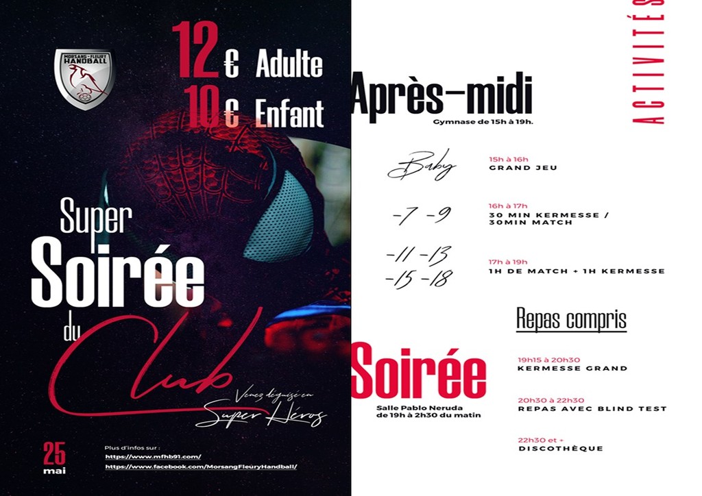 C'est l'heure de réserver son samedi 25 mai car c'est la SUPER SOIREE DU CLUB.