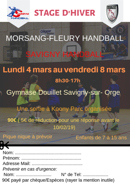 Ce stage aura lieu pendant les vacances d’hiver du Lundi 4 Mars au Vendredi 8 Mars 2019 au Complexe D.Douillet de Savigny-sur-Orge excepté notre sortie qui aura lieu à Konny Parc (Bondoufle) mais le transport sera pris en charge par nos soins.