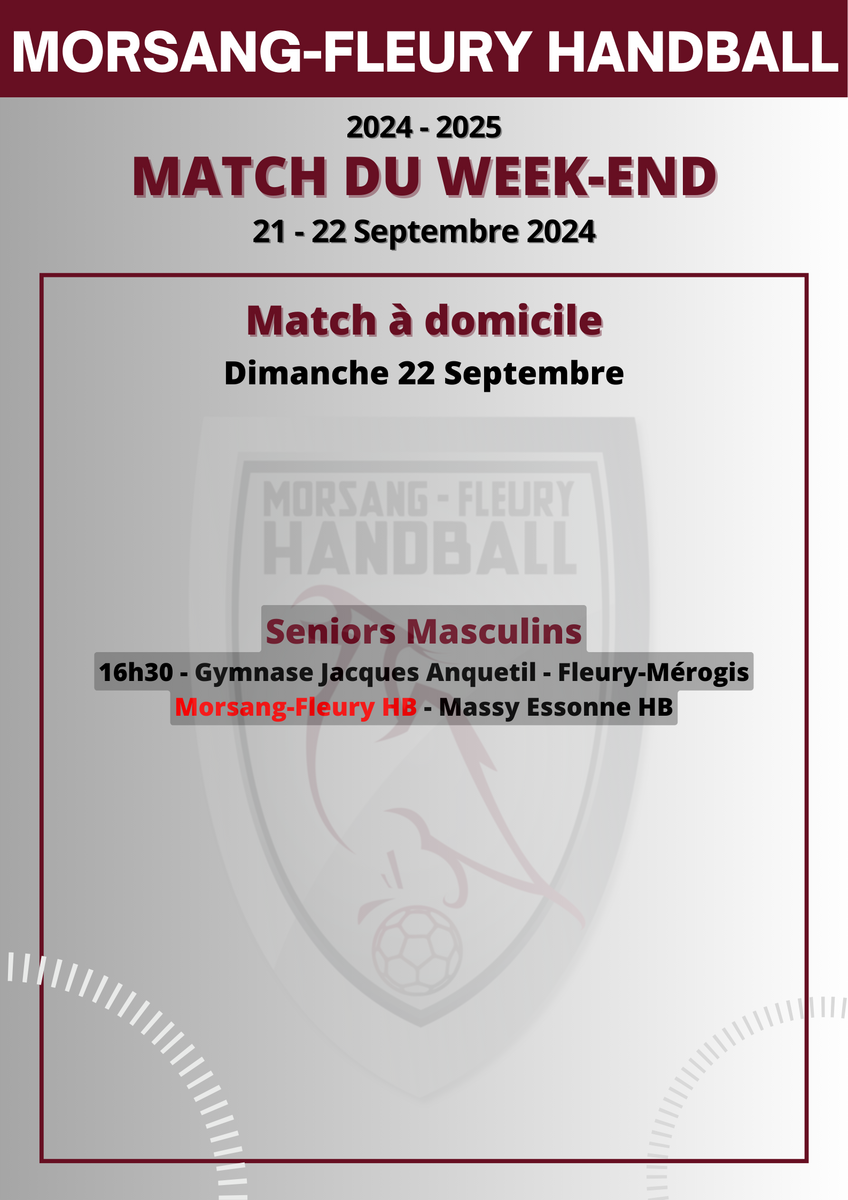 Pour continuer sur leur lancée du week-end dernier, les joueurs de Morsang-Fleury seront opposés au Massy Essonne HB !